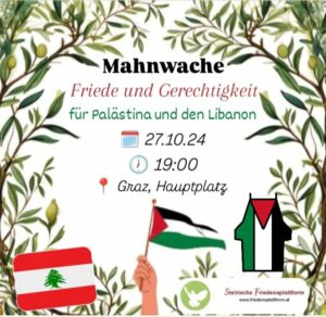 Datum: Samstag, 2. November 2024Uhrzeit: 14 UhrOrt: Columbusplatz, 1100 Wien Seit über einem Jahr begeht Israel einen aktiven Völkermord an den Palästinenser:innen vor den Augen der Weltöffentlichkeit. Dieser wird unvermindert und vorbehaltlos von den Regierungen westlicher Staaten unterstützt, allen voran von den Vereinigten Staaten. Nicht nur hat Israel sein Massenmorden nicht vermindert, sie haben es ausgeweitet und den Libanon ...